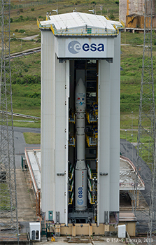 This mission will follow hard on the heels of the maiden VV-01 launch in February 2012, which put Vega through its paces as the lightest booster in Arianespace’s fleet. However, whereas VV-01 was an inaugural demonstration of the vehicle, the second flight is far more ambitious, with plans to deploy its three satellite payloads at two different orbital altitudes. It marks the first in a series of five Vega Research and Technology Accompaniment (VERTA) missions to demonstrate its flexibility and ability to transport multiple spacecraft into different orbits. In future developments, Arianespace hopes to utilize Vega in 2015 to launch the LISA Pathfinder—a technology demonstrator for the joint NASA/ESA Laser Interferometer Space Antenna—into a “halo orbit” around the L1 Earth-Sun Lagrange Point.