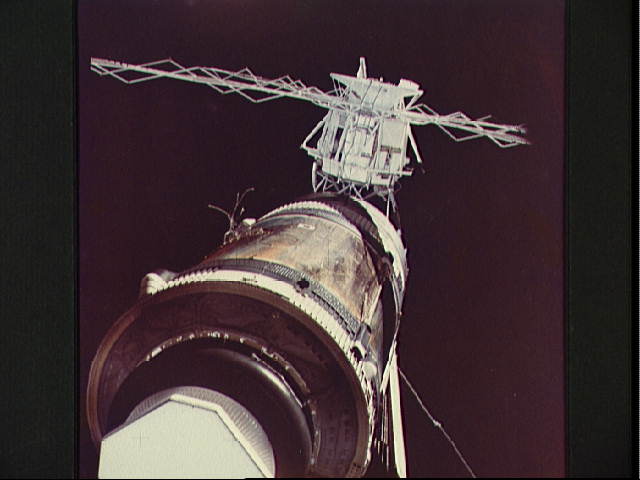 For a while, it seemed that the assumption was correct. The Saturn was flying perfectly, its second stage picking up the thrust for the final boost into low-Earth orbit, and at 1:40 p.m. the space station was released at an altitude of 430 km, about 1,800 km downrange of the Cape, high above the Atlantic Ocean. The bullet-like shroud separated and at 1:47 p.m. electric motors rotated Skylab’s massive Apollo Telescope Mount (ATM) out 90 degrees, locking it into place and deploying its windmill of four solar arrays. Before the mission, the successful deployment of the ATM had been a lingering concern … and it had been executed without a whimper. In the euphoria of those first few minutes in orbit, the mysterious bit of telemetry about the micrometeoroid shield and No. 2 solar array almost went unnoticed.