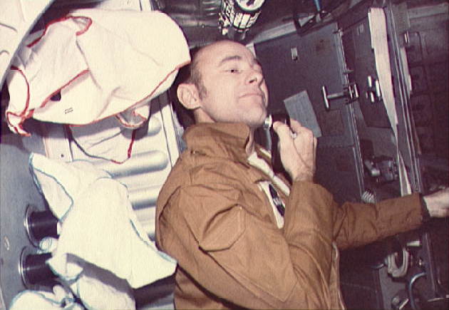 “We could see [the quantity] going down on the meter,” Lousma recalled, “so we shut off all the valves and made sure everything was secure, just closed up all the plumbing and reported it to Mission Control.”