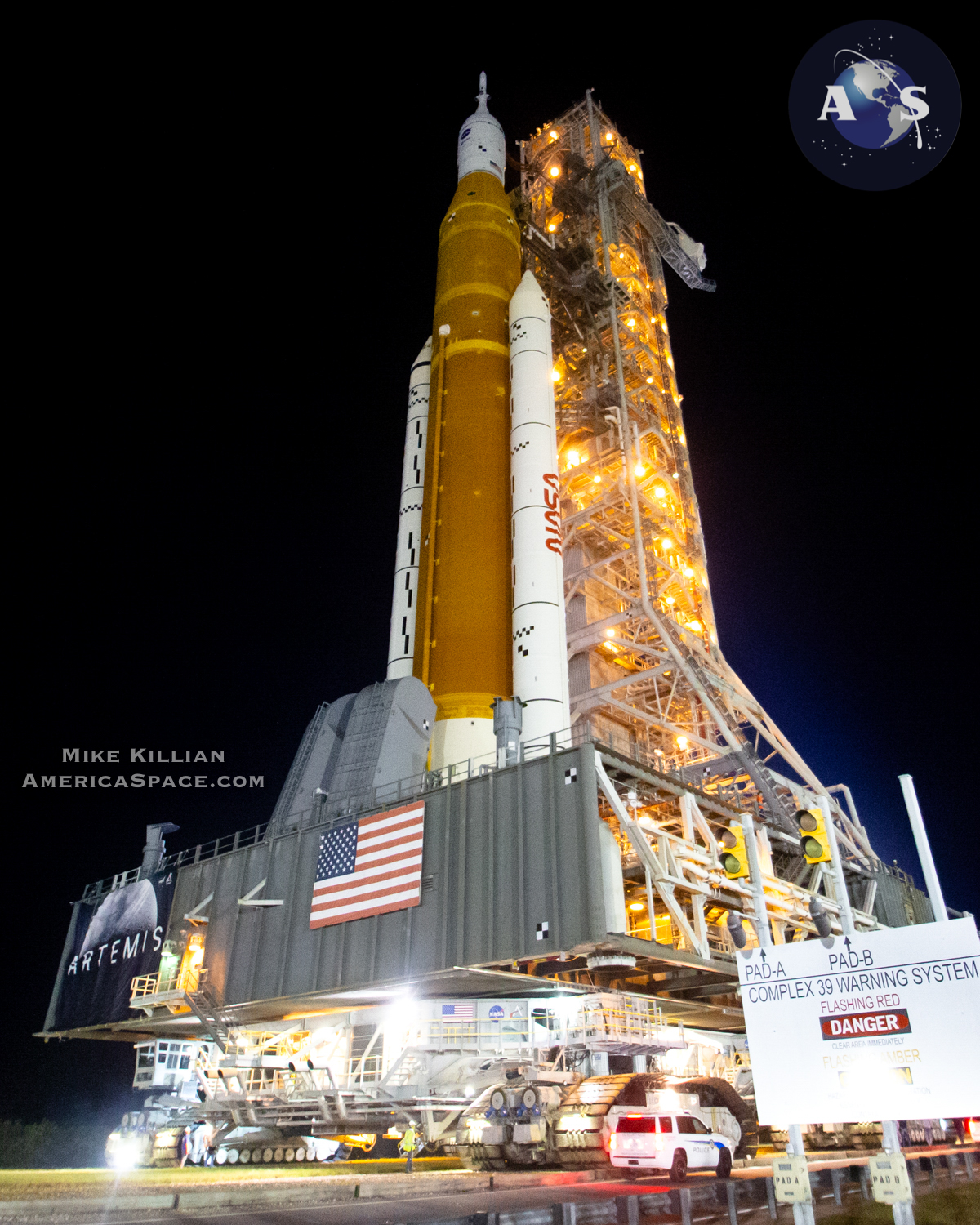 Last Thursday, the hatch of the Orion Crew Module (CM) was closed for flight and the Crew Access Arm (CAA)—which connects the spacecraft to the Pad 39B tower at the 274-foot (83.5-meter) level of the 380-foot-tall (115.8-meter) Mobile Launcher (ML)—was retracted from the SLS. The Artemis I Mission Management Team (MMT) met Saturday to discuss the status of this historic flight, which will see a crew-capable spacecraft travel to lunar distance for the first time since Apollo 17, way back in December 1972.
