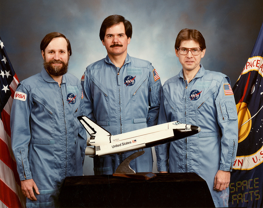 ASTRO-1 was an important scientific payload for astronomy and as such it might seem unsurprising that its crew included not only a “core” NASA crew, but also a pair of professional scientists. In June 1984, Durrance and fellow astronomers Ron Parise and Ken Nordsieck were selected to train for a pair of payload specialist positions on up to three ASTRO missions in 1986-1987.