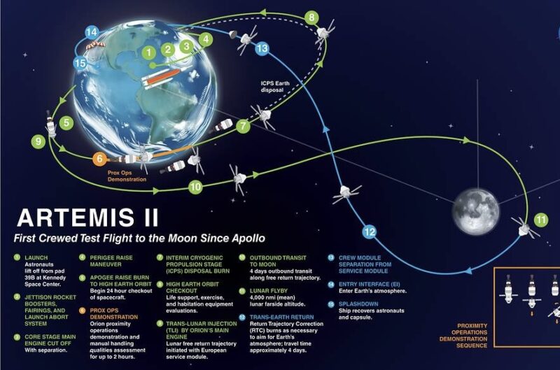 It’s similar to Apollo 13’s trajectory, which currently holds the record for furthest humans from Earth. Artemis-2 will break that record, reaching about 4,700 miles past the moon, before falling a quarter-million miles back to Earth.
