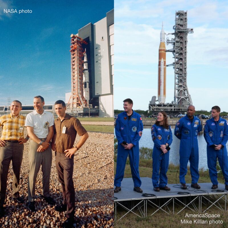 The 322-ft tall Artemis-2 stack rolled out of Kennedy Space Center’s iconic Vehicle Assembly Bldg (VAB) on Jan 17. Inch-by-inch the skyscraper-size vehicle moved out of High Bay 3, originally constructed for Saturn V Apollo moon rockets in the 1960s.