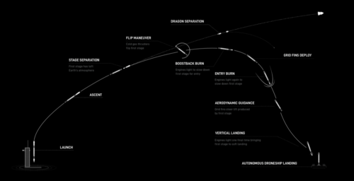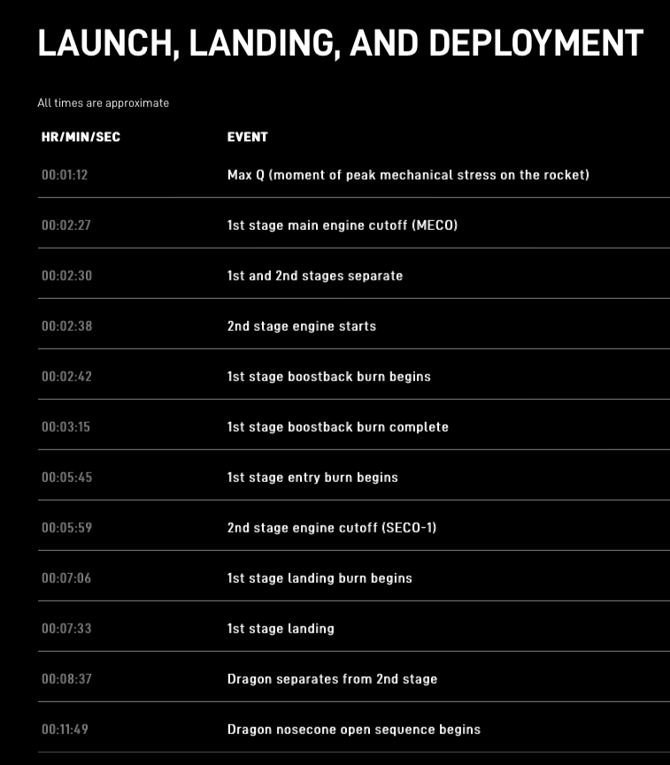 The launch phase of the mission will last just over 8 and a half minutes. After engine cutoff and separation the Booster will return to land on the Drone Ship "Of Course I Still Love You".