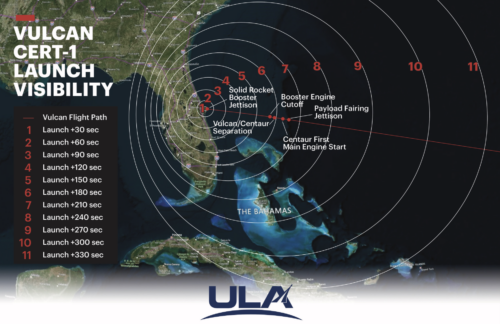 If you are in Florida and the weather is clear there is a chance that you will be able to see the Vulcan rocket as it heads into space. The graphic below shows the possible viewing visibility during the flight.