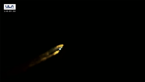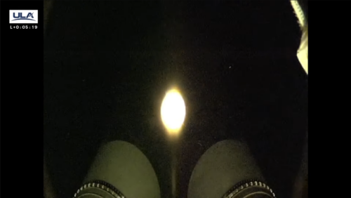 The twin engines of the Centaur upper stage have just completed their first burn of 3 today. The rocket is now in orbit and will coast for 28 minutes before the second burn starts.